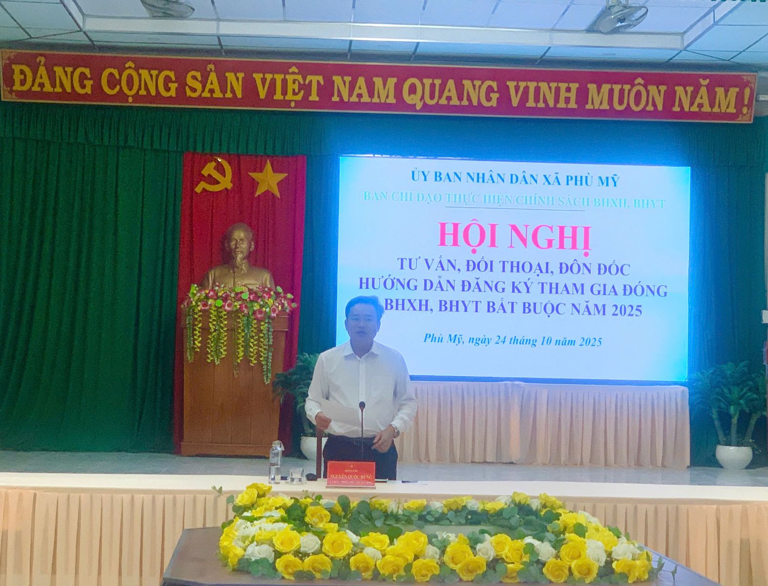Phát biểu kết luận Hội nghị, đồng chí Nguyễn Quốc Hùng – Phó Chủ tịch UBND xã Phù Mỹ đề nghị các đơn vị, doanh nghiệp, hộ kinh doanh thực hiện nghiêm túc các quy định về BHXH, BHYT, bảo đảm quyền lợi cho người lao động. Đồng thời yêu cầu BHXH cơ sở Phù Mỹ tăng cường công tác kiểm tra, giám sát, không để chậm trễ trong việc tham gia, giải quyết chế độ BHXH, BHYT; tạo sự an tâm, tin tưởng cho đơn vị, doanh nghiệp và người lao động.