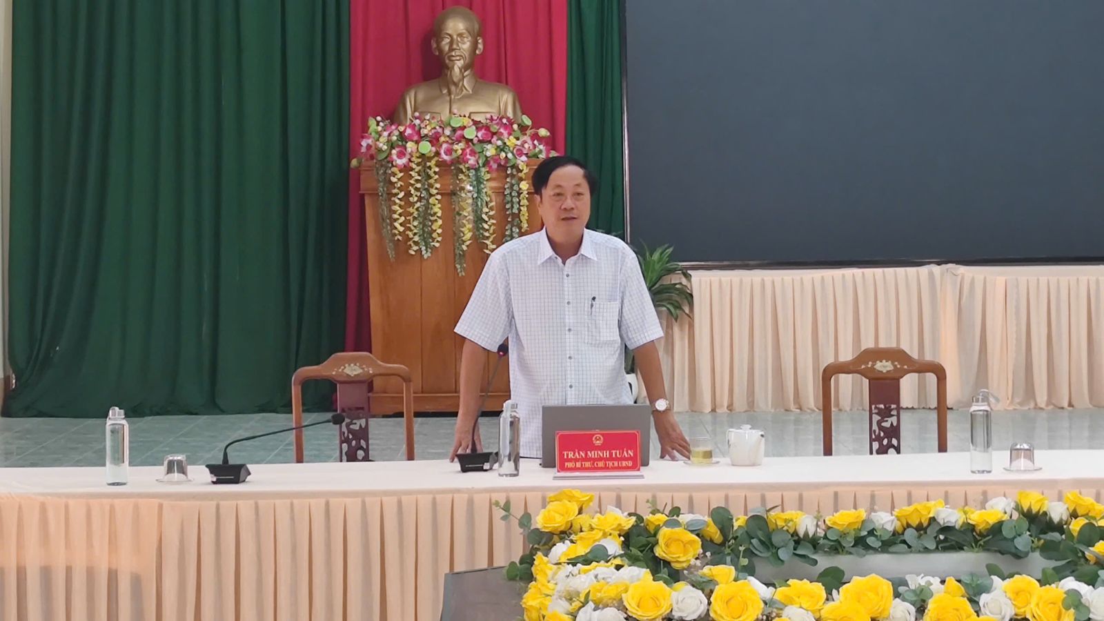 Đồng chí Trần Minh Tuấn - Phó Bí thư Đảng uỷ, Chủ tịch UBND xã, Chủ tịch Hội đồng xác định mức độ khuyết tật xã phát biểu tại buổi làm việc