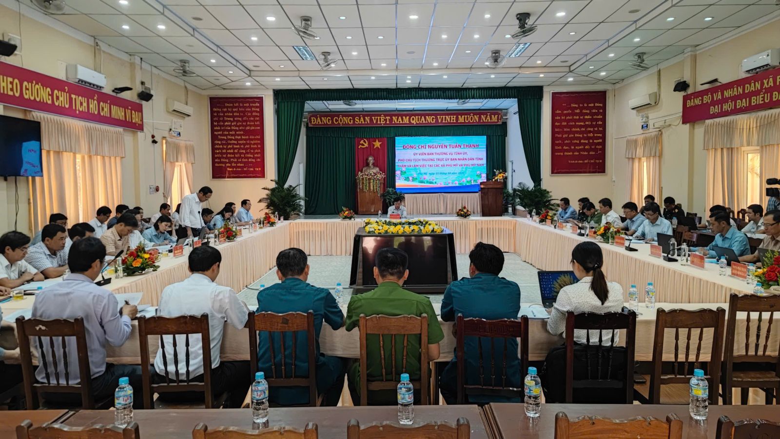 Chiều 11/10, tại Hội trường UBND xã Phù Mỹ, Đoàn công tác do Phó Chủ tịch Thường trực UBND tỉnh Nguyễn Tuấn Thanh làm Trưởng đoàn đã có buổi làm việc với 02 xã Phù Mỹ và Phù Mỹ Nam nhằm nắm bắt tình hình vận hành tổ chức bộ máy và công tác chỉ đạo, điều hành phát triển kinh tế - xã hội trên địa bàn sau sáp nhập. Cùng tham gia đoàn công tác có đại diện lãnh đạo các sở, ngành: Nội vụ, Tài chính, Xây dựng, Nông nghiệp và Môi trường, Khoa học và Công nghệ, Dân tộc và Tôn giáo, Công an tỉnh, Bộ Chỉ huy Quân sự tỉnh, Văn phòng UBND tỉnh.