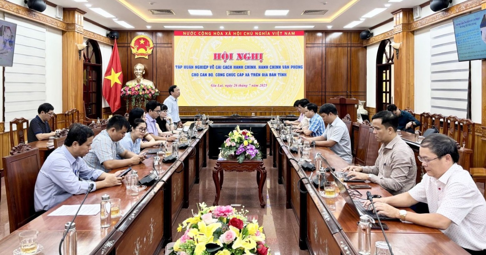 Đồng thời, tập huấn nghiệp vụ về công tác Cải cách hành chính trong thời điểm hiện nay. Trong đó, tập trung trao đổi giải quyết vướng mắc đối với những vấn đề thực tiễn phát sinh trong triển khai thực hiện nhiệm vụ tại địa phương khi tổ chức chính quyền địa phương hai cấp.