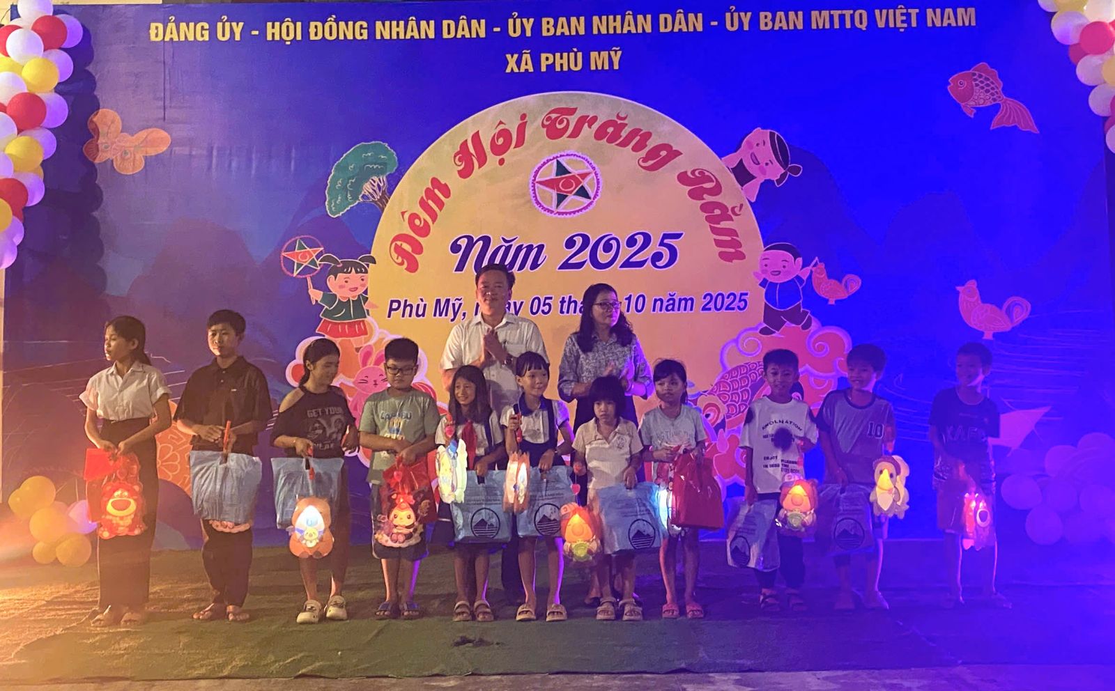 Tối 5/10, tại sân trụ sở UBND xã Mỹ Chánh Tây (cũ), Đảng ủy, HĐND, UBND, Ủy ban MTTQ Việt Nam xã Phù Mỹ tổ chức “Đêm hội trăng rằm năm 2025” dành cho các em thiếu nhi trên địa bàn.